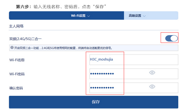 第六步:輸入無線名稱、密碼后,點(diǎn)擊保存
