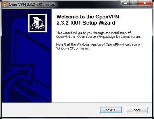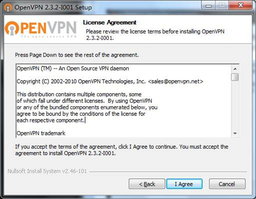 2、安裝OpenVPN,NETGEAR的VPN服務功能是基于OpenVPN的技術實現的,因此,我們要在每一臺需要連接VPN的電腦上安裝部署OpenVPN軟件。訪問http://support.netgear.cn/doucument/Detail.asp?id=2251獲取適用于您的操作系統的OpenVPN軟件,本例中獲取的軟件安裝包為“openvpn-install-2.3.2-I001-i686.exe”。雙擊運行此安裝程序,根據安裝程序提示完成安裝: