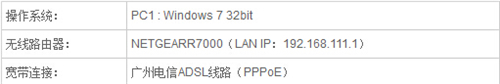 1、我們以上圖的拓撲結構來說明此功能如何配置。待配置成功后,PC1可訪問R7000無線路由器的內網資源。環境如下: