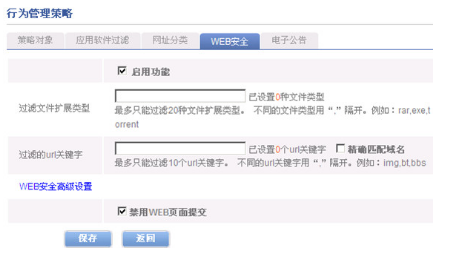 3、在完成“網址分類”配置之后進行“WEB安全配置”。如下圖: