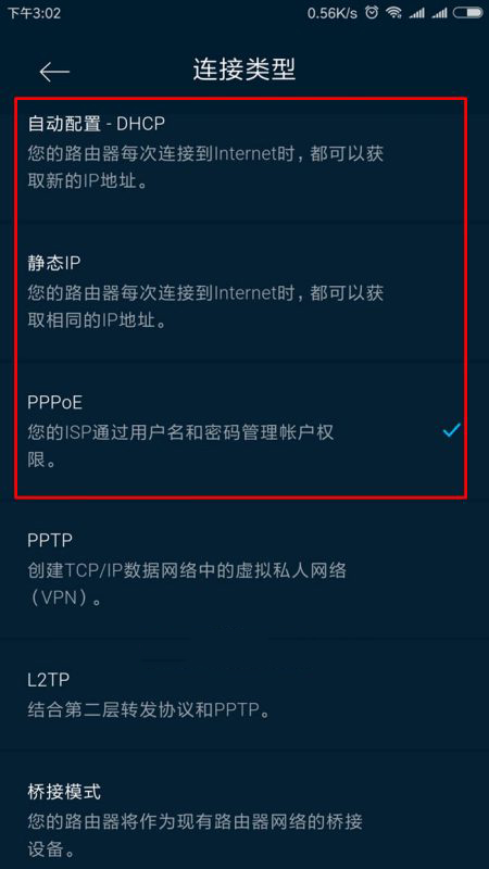 大多數上網方式是PPPoE撥號,也就是需要寬帶上網的帳號密碼,少數是用DHCP(例如一些網線入戶的大內網)。