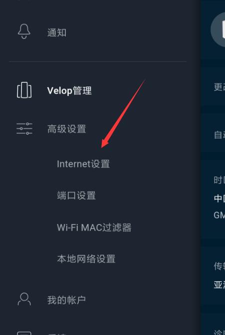 留意到上圖中的VELOP主節點插了2根網線,一根來自光貓,光貓是橋接模式,主節點是PPPOE撥號上網,這時主節點就是一臺主路由器的角色。在VLEOP的APP菜單“internet設置”里有以下選項: