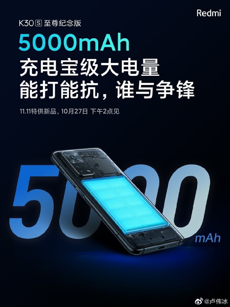 盧偉冰:Redmi K30S至尊紀念版配備50