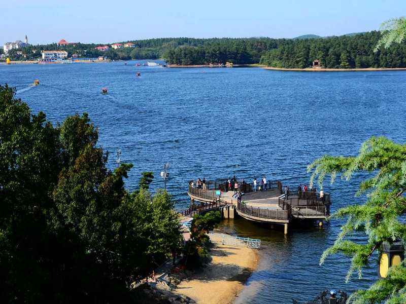 岱山湖風景:演法禪寺、天鵝
