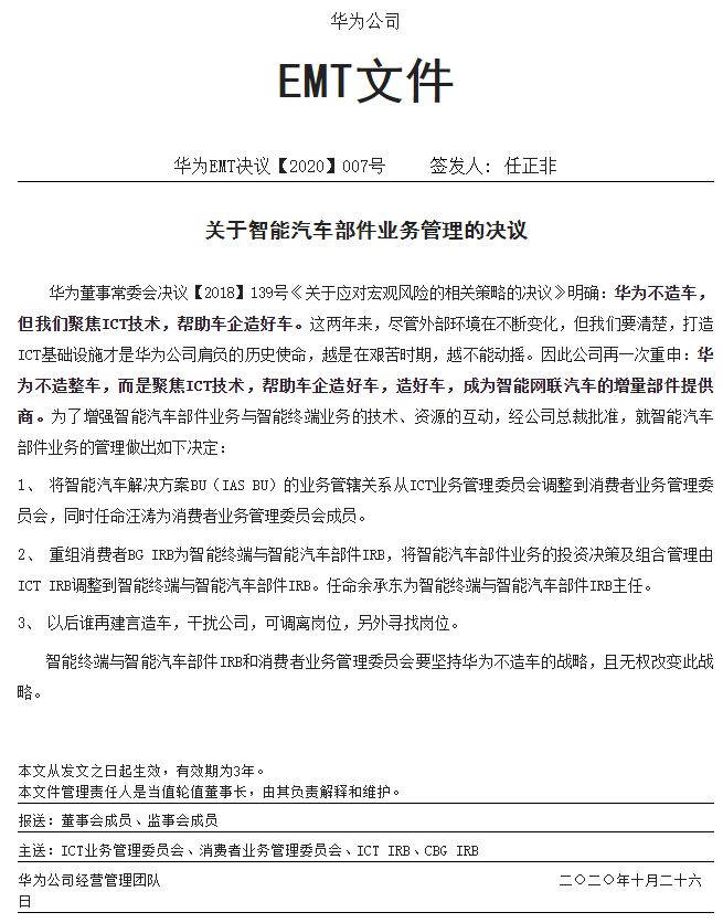 華為:智能汽車歸消費者業務 誰再建