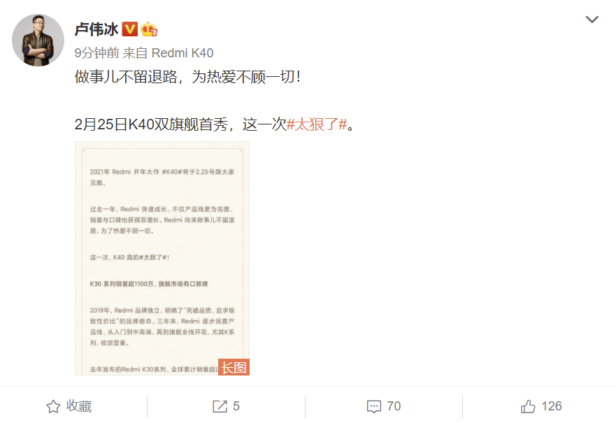 盧偉冰詮釋K40系列定位:雙旗艦、全