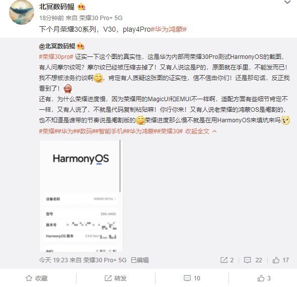 爆料:榮耀30 Pro已開始測試華為鴻蒙