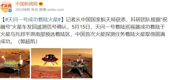 天問一號成功著陸火星