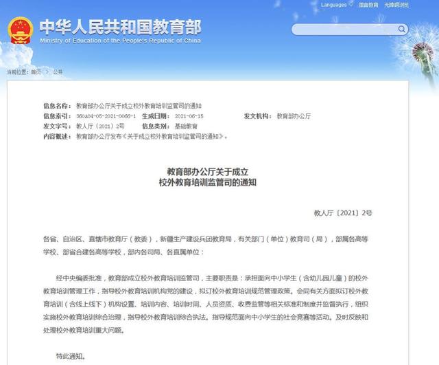 教育部成立校外教育培訓監管司