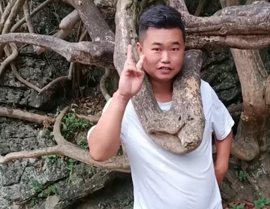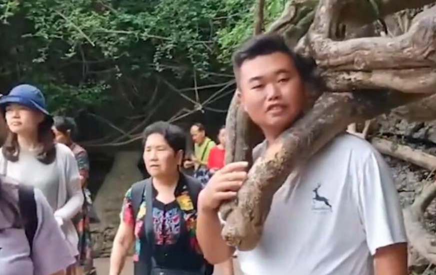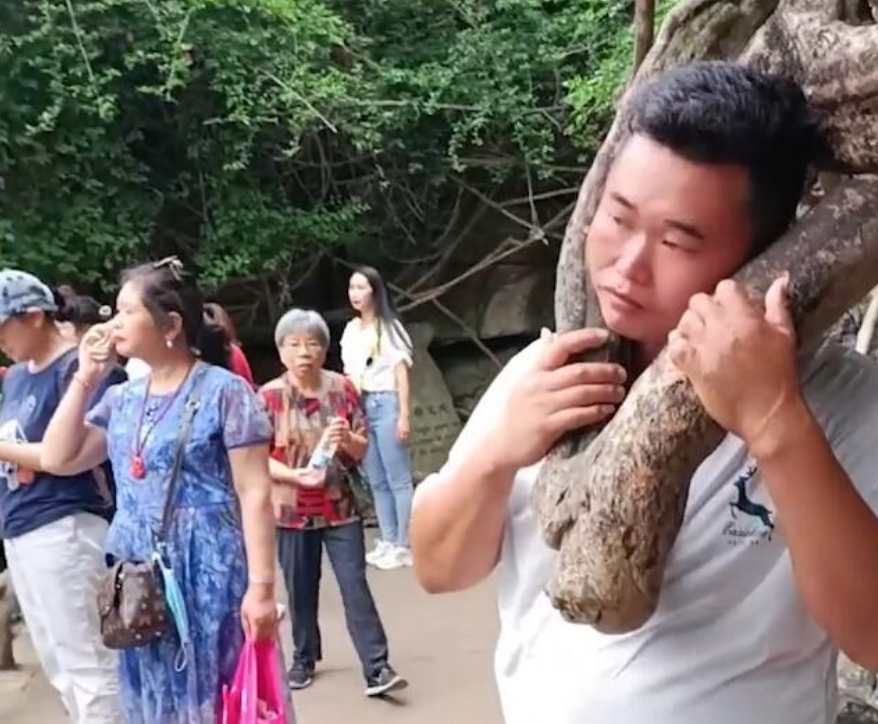 貴州男子將頭伸進樹杈拍照,不料被卡