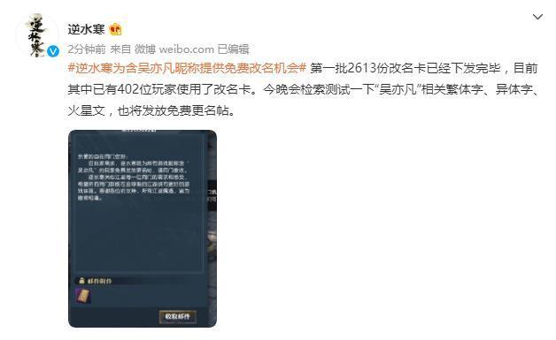 不想叫“吳亦凡”?游戲《逆水寒》官