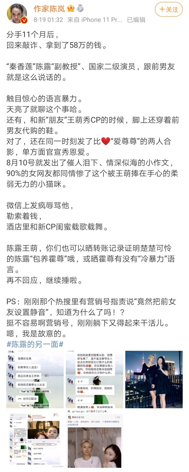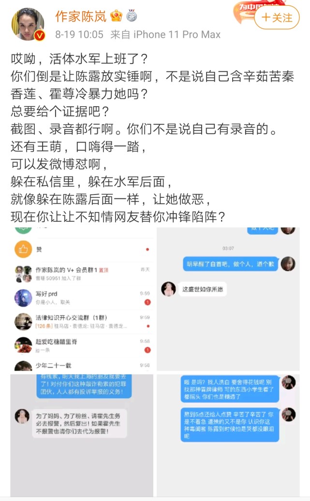 作家陳嵐夸霍尊太老實,舉報陳露敲詐