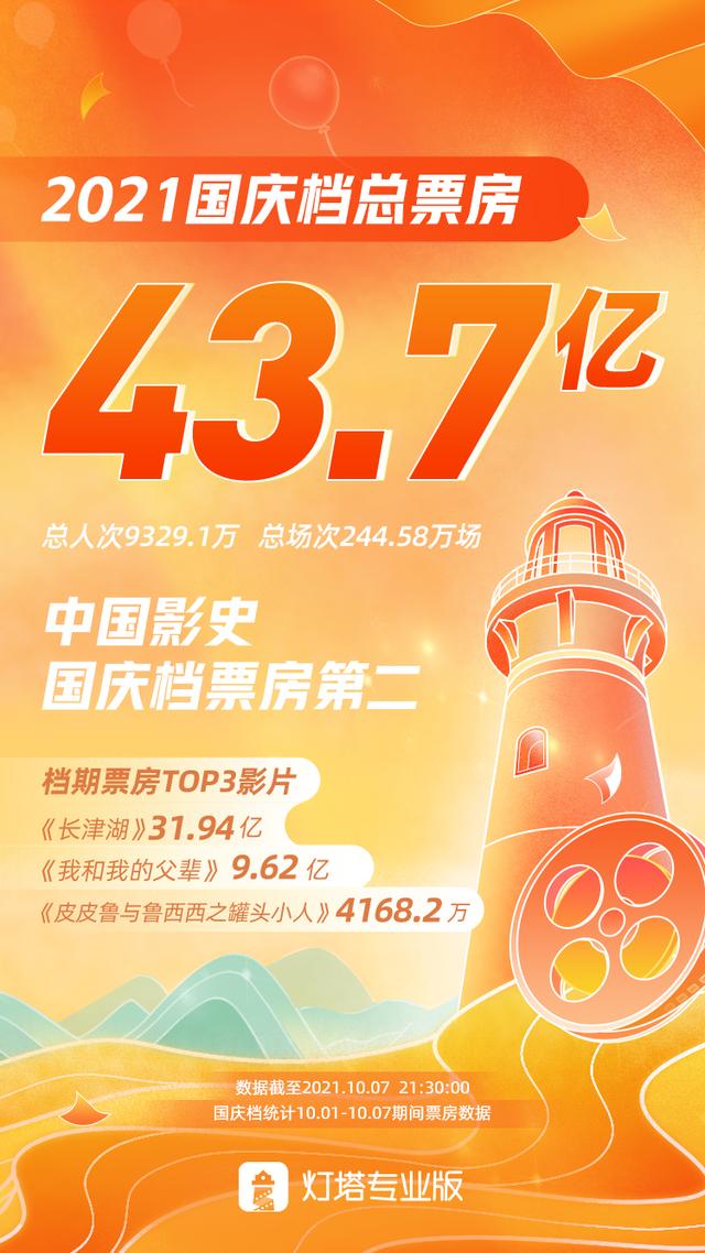 2021國(guó)慶檔總票房達(dá)43.7億 總?cè)舜?