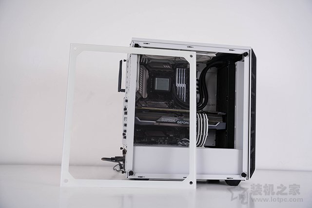 側(cè)透設(shè)計(jì)是為了更好的適應(yīng)現(xiàn)在主打燈效氛圍的裝機(jī)需求,搭配上整個(gè)箱體的白色為主,黑色為輔的拼色處理,再加上大面積的側(cè)透玻璃,完全可以把主機(jī)左側(cè)的硬件光效輸出發(fā)揮出來(lái),這就是顏值擔(dān)當(dāng)?shù)囊幻妗?/p>