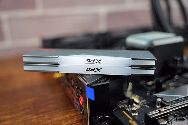 內(nèi)存方面,采用的是2根威剛XPG 龍耀D50 DDR4 3600 8G(8G*2套裝),共16G內(nèi)存,一般來說,16G容量基本可以滿足大多數(shù)軟件、游戲,當(dāng)然如果覺得不夠,還可以進(jìn)行擴(kuò)展。龍耀D50采用銀灰色的金屬散熱片,使用簡單的線條交錯出幾何圖案,散熱片頂部三角形為RGB燈效部分,該燈效覆蓋著內(nèi)存整個頂部。
