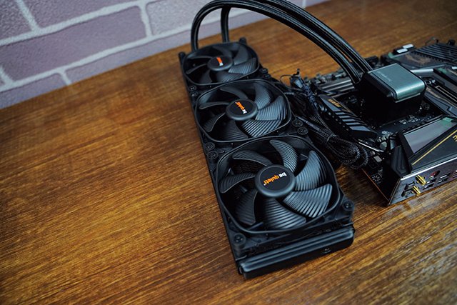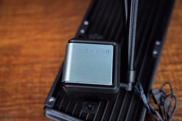 為了保障R7 5800X良好的散熱,所以考慮了一款360規(guī)格水冷,即be quiet! SILENT LOOP 2 360 一體水冷散熱器,冷頭表面為銀色拉絲金屬設(shè)計,并標(biāo)有Be Quite!的字樣,水冷頭底部為大面積的純銅底,銅底表面有鍍鎳處理,在冷頭的四周搭載了ARGB炫彩光效,多種絢麗的燈控模式,用戶可以通過控制器或者主板來控制燈光。