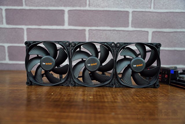 be quiet! SILENT LOOP 2 360 一體水冷散熱器配備了3個be quiet! SILENT WINGS 3 12cm PWM風(fēng)扇,風(fēng)扇看似很普通,但是通過設(shè)計細(xì)節(jié)上并不普通,為了更好的風(fēng)扇靜音,在風(fēng)扇扇葉上采用了水波紋的設(shè)計,有效降低高速轉(zhuǎn)動帶來的風(fēng)噪音,并且在四角處配備了四個固定柱,里面塞有純橡膠材質(zhì)的東西,這樣的設(shè)計有利于吸收風(fēng)扇高速轉(zhuǎn)動帶來的震動。