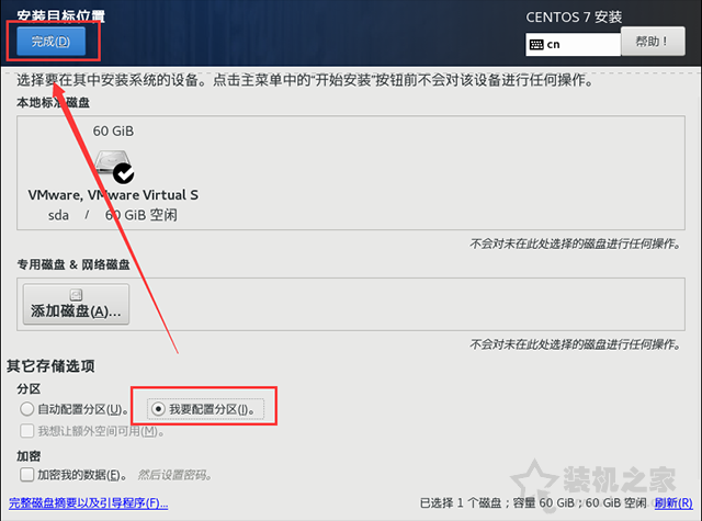 13、如果你想要自己對磁盤進行分區,點選“我要配置分區”,并點擊完成。