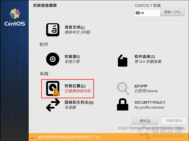 12、我們點擊“安裝位置”,進行分區,默認是自動分區。