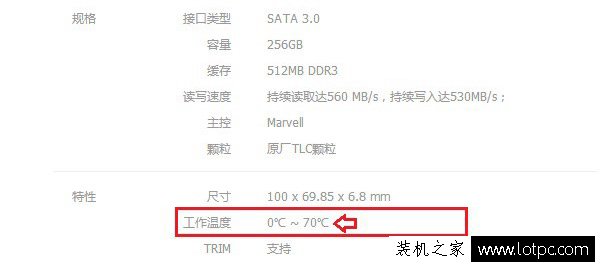 首先在電商平臺(tái)或者中關(guān)村搜索查看該SSD型號,查看該SSD固態(tài)硬盤的參數(shù),在參數(shù)里面會(huì)有明確的規(guī)定,只要在規(guī)定的范圍即可,一般0度-70度范圍為正常,如下圖所示: