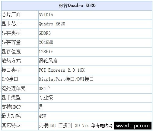 麗臺Quadro K620是一款專業圖形顯卡,顯存容量為2G,其位寬為128bit,涵蓋低中高等級繪圖卡,并且通過多家ISV軟體實測,整體效能大幅提升,支持多屏輸出,搭載了高效靜音散熱風扇,能夠有效降低顯卡運行時產生的溫度,提供1個DP和1個DVI輸出接口,該顯卡詳細參數如下:
