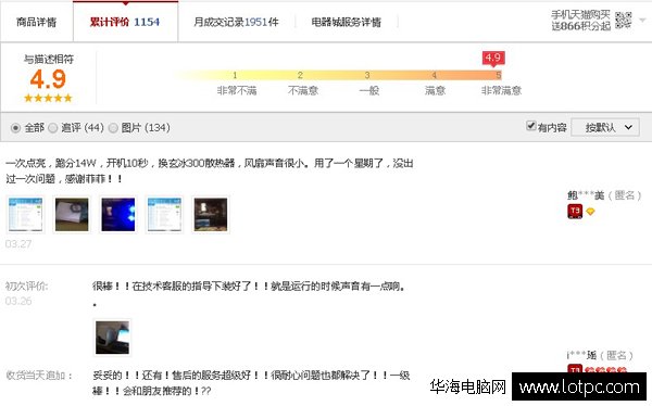 在篩選出一些銷量不錯,信譽標識比較高的店鋪時,下一步就是看網友評論了。網友評論可以反映該店鋪的各種情況,例如售后服務,產品質量,機器各種真實問題。由于有時評論特別多,如果發現大量簡短的評論,如“很不錯”“很滿意”“老婆很喜歡”等等那些,多數就是刷出來的。消費者應該更加關注中評和差評,淘寶店是可以篩選,而天貓店是不能篩選,不過可以查看追加評論來判定。同時,不少網友會上傳圖片的,我們專門挑有上傳圖片的評論來參考,當然,留意各大IT門戶網(如華海電腦網、中關村)以及diy論壇也能讓你在選購產品中有幫助的。