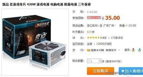 淘寶上的某商家的低價促銷電源