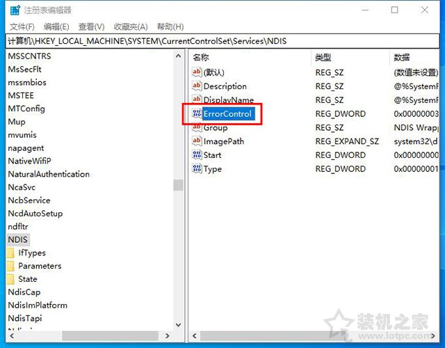 在右側窗口中,我們雙擊“ErrorControl”項目,將數值數據由3修改為1,并且點擊確定。