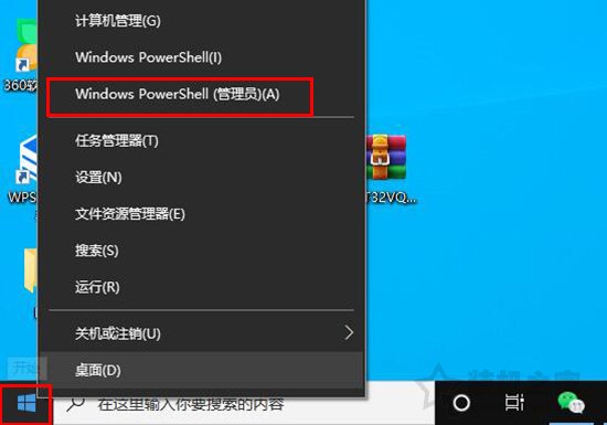 再鼠標右鍵點擊“開始菜單”,選擇“Windows PowerShell(管理員)”。