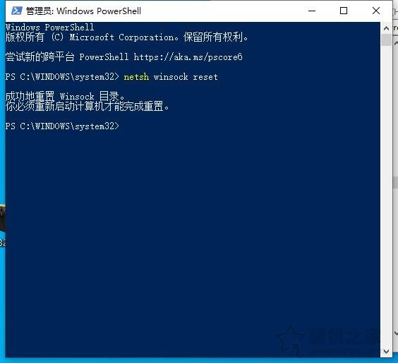 打開Windows PowerShell之后,我們在窗口中輸入如下命令,重置網絡。
