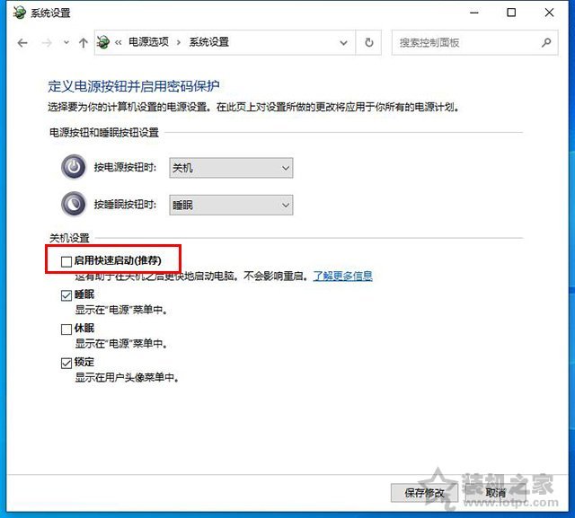 點擊“開始”菜單,展開windows系統,點擊控制面板,打開控制面板,將查看方式修改為“大圖標”,點擊“電源選項”,點擊“選擇電源按鈕的功能”,如果無法修改關機設置的操作,我們先點擊“更改當前不可用設置”,在關機設置中將“啟用快速啟動(推薦)”前面勾選取消,并保存修改。