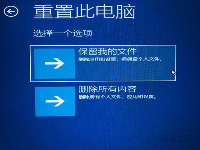 4、有兩個選項,一個是保留我的文件,一個是刪除所有的內容,我建議是保留我的文件。