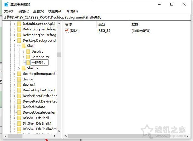 3、將新建的項重命名為【一鍵關機】,如下圖所示。