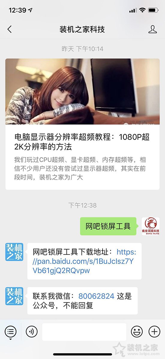 1、打開手機微信,在微信公眾號中搜索并關注“武林網科技”,回復關鍵詞“網吧鎖屏工具”,即可獲得下載地址。