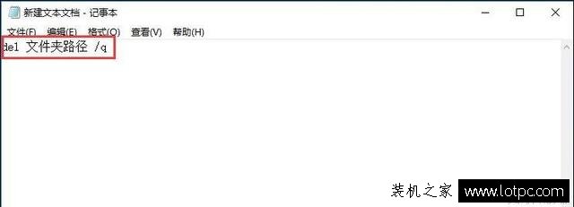 2.在新建的記事本中輸入:“del 文件夾路徑 /q ”。例如:del C:/WINDOWS/Temp /q ,C:/WINDOWS/Temp就是系統臨時文件