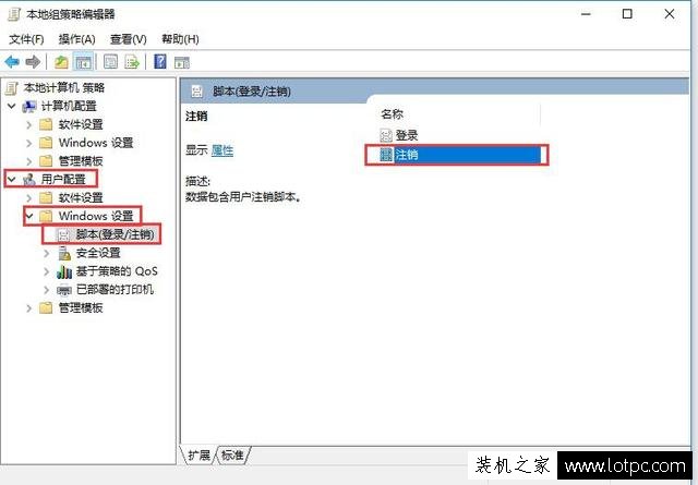 依次展開:用戶配置 - Windows設置 - 腳本(登錄/注銷)。