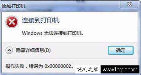 Win7無法連接打印機(jī)提示錯(cuò)誤0x00000002解決方法
