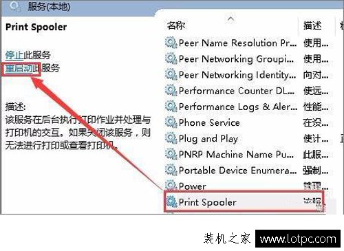 4、在服務(wù)的界面中找到“print spooler”服務(wù),重新啟動(dòng)此服務(wù),如下圖所示。