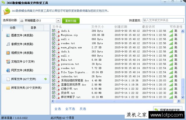 準備工具:360勒索蠕蟲病毒文件恢復(fù)工具(下載地址搜索下該工具名字)