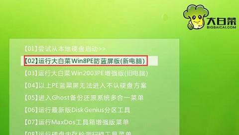 1、進入了大白菜主菜單之后,接著選擇進入大白菜Win8pe系統,如下圖所示:
