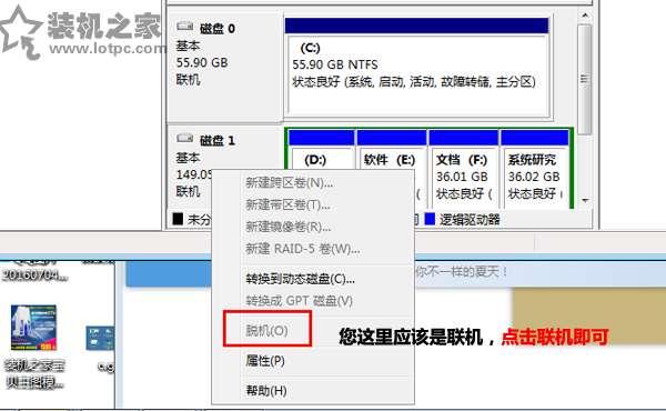 由于小編磁盤為正在使用情況,因此聯(lián)機(jī)不顯示,希望以上圖文教程能夠幫助大家解決所在問題。