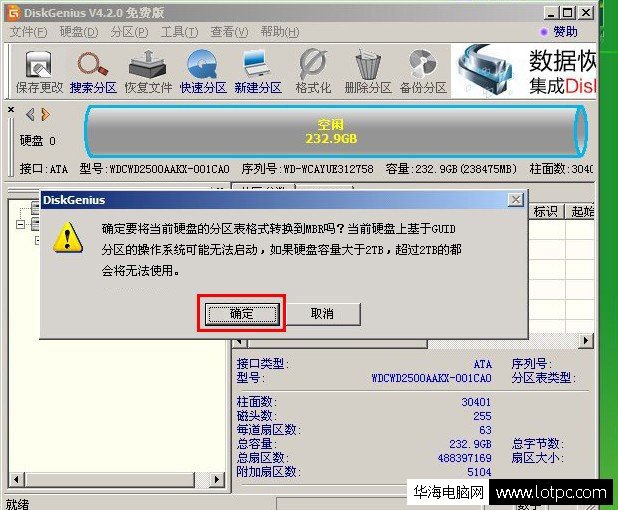 這時我們點擊“確定”,成功將硬盤的分區表格式轉換MBR格式;