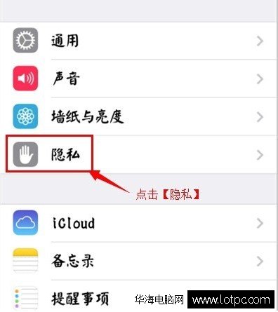 在【設置】里找到【隱私】的選項并且點擊進去