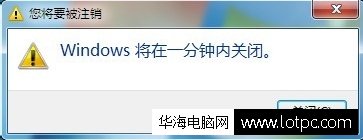 6.到關機的前一分鐘會出來一個提示如圖: