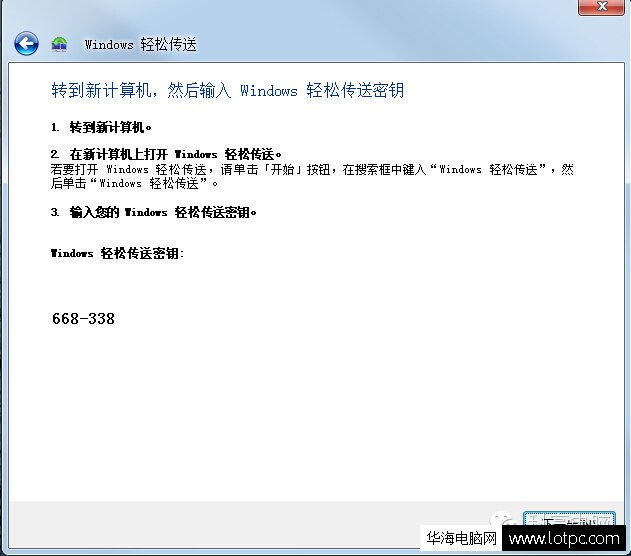 緊接著,舊電腦上會出現一個“傳送密碼”,如下圖,我們要記住這個密碼,稍后會用到。