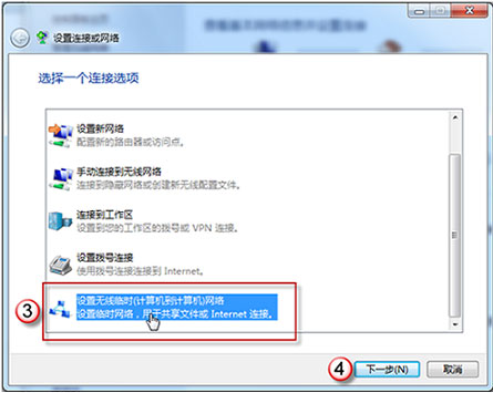 設置連接或網絡選擇最后一項“設置無線臨時計算機網絡”
