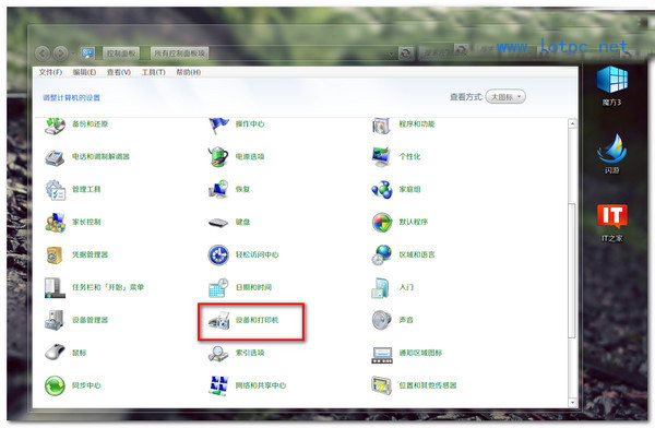 方法二:【開始】-【設備與打印機】,或如下圖到控制面板里找