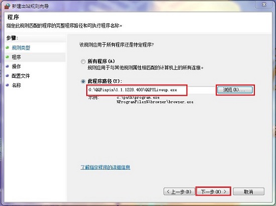 點擊“瀏覽”找到該程序位置,確定,使其路徑出現在路徑框中。再點擊“下一步”