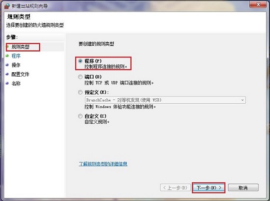 在“要創建的規則類型”中,選中“程序”,再點擊“下一步”。