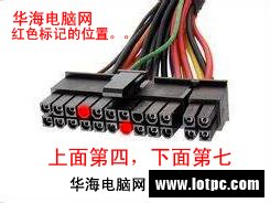 首先我們把主板上的24pin電源供電接口拔下,我們利用一個金屬絲連接電源24pin供電接口上進行通電,為電源接口上的第四個插口和下面的第七個插口(我們以電源24pin供電接口卡口處為上),如果這時電源的風扇轉動了,就可以說明是主板的問題,不轉就是電源的問題了。